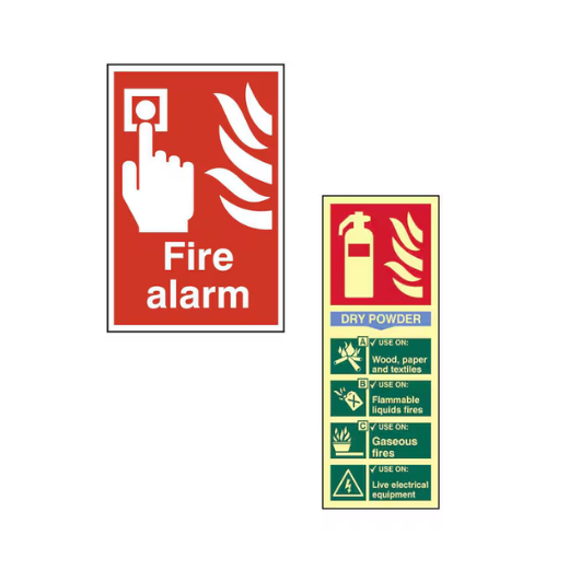 Fire Equipment: Provide vital information about the location and identification of firefighting equipment. Typically used in offices, plant rooms, and areas where fire hazards are present. Some examples include: