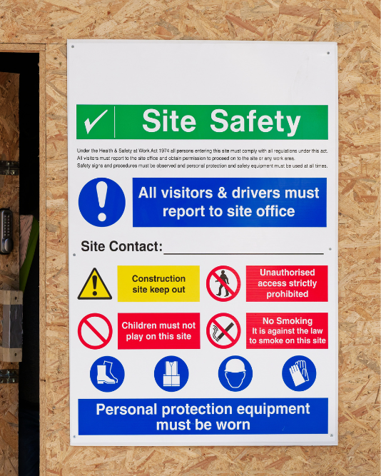 Site safety notice boards are at the core of safety standards on every construction site. They are commonly used to communicate messages such as: