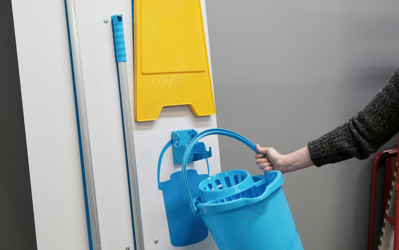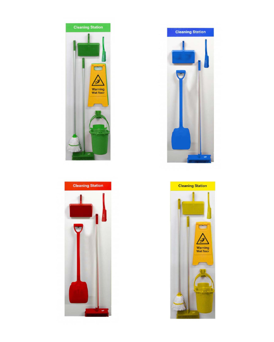 Now imagine that worker cleaning up throughout the day. They need to find the dustpan and brush, mop and bucket and any other cleaning items. Workers can quickly start spending more time finding things than working. If multiple people are working at a station, a shadowboard will also help streamline operations, as everything is in one place, reducing the time spent looking for where colleagues have left items.