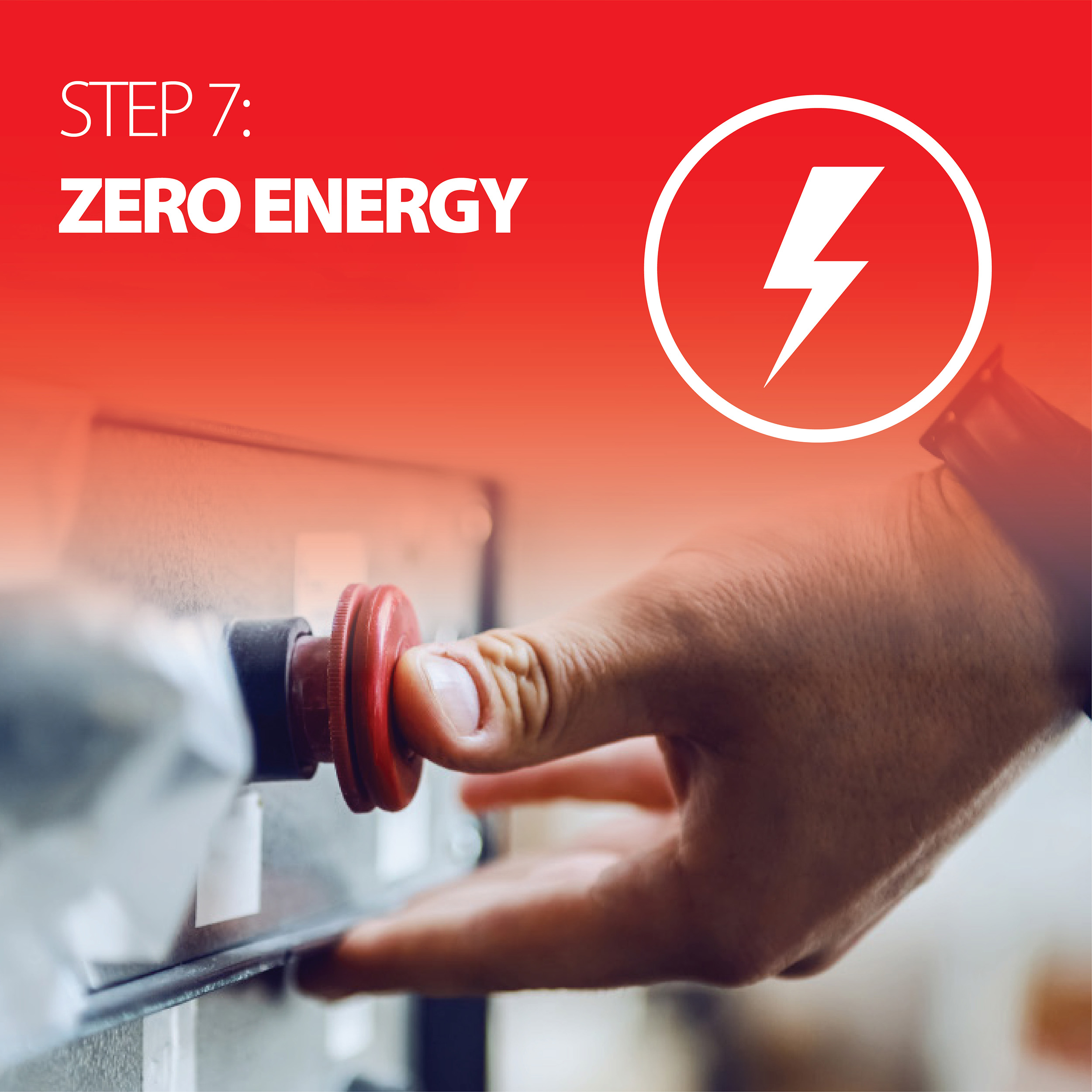 Following the correct steps builds a zero-energy mindset and a way of thinking that treats safety as the highest priority and demands complete energy isolation before action. A zero-energy mindset helps reduce the chance that the machine is re-energised and minimises the risk of injury or death.