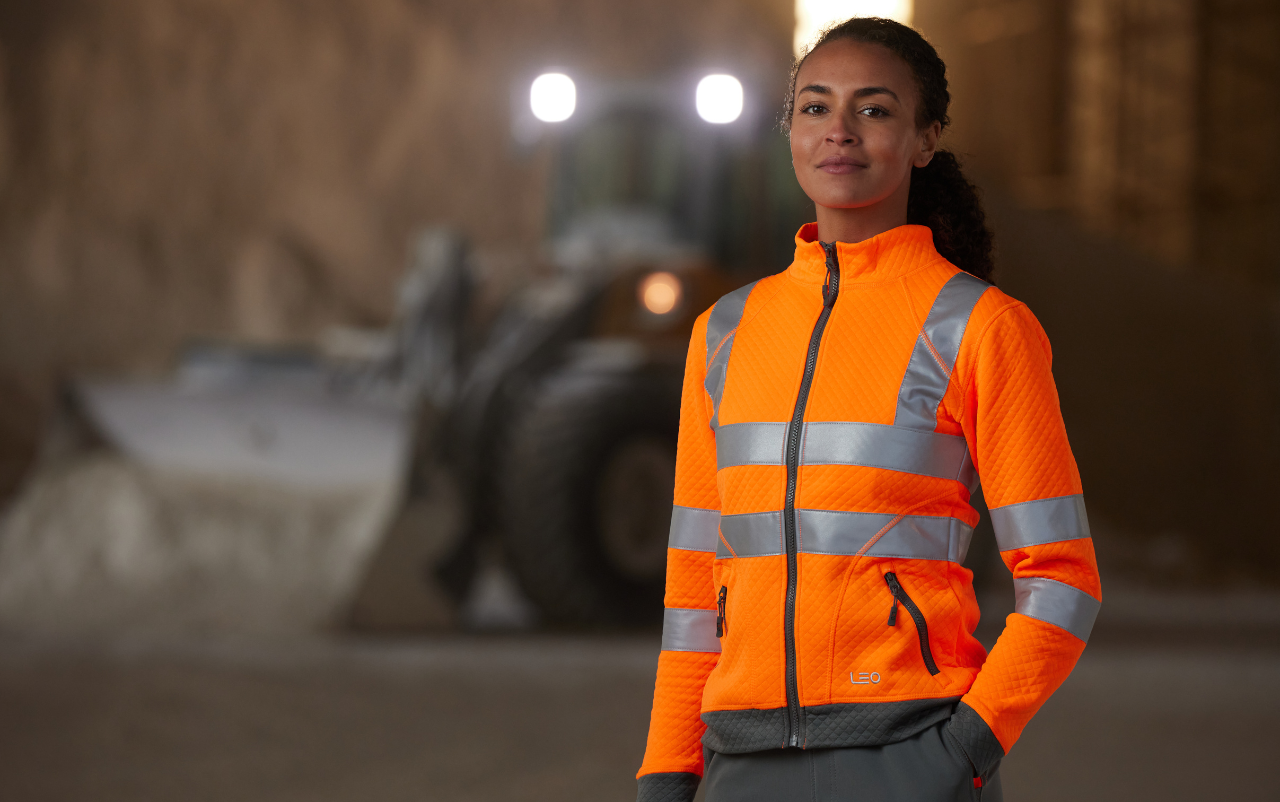 In environments where high‑visibility clothing is mandatory, every visible layer must stand independently compliant. This is easily achieved when using Leo garments throughout the layering system.
